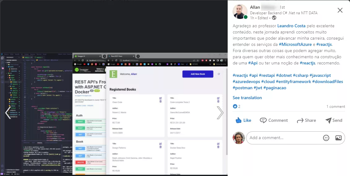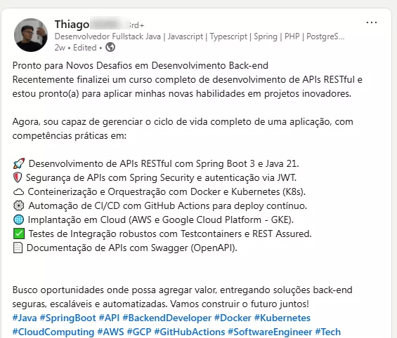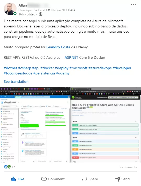 ✓ Apresente em processos seletivos como comprovação de suas habilidades em ASP.NET 10, testes unitários e testes de integração, Docker, Cloud Computing (Azure e Google Cloud), Kubernetes e muito mais