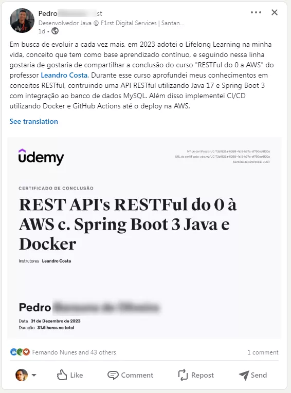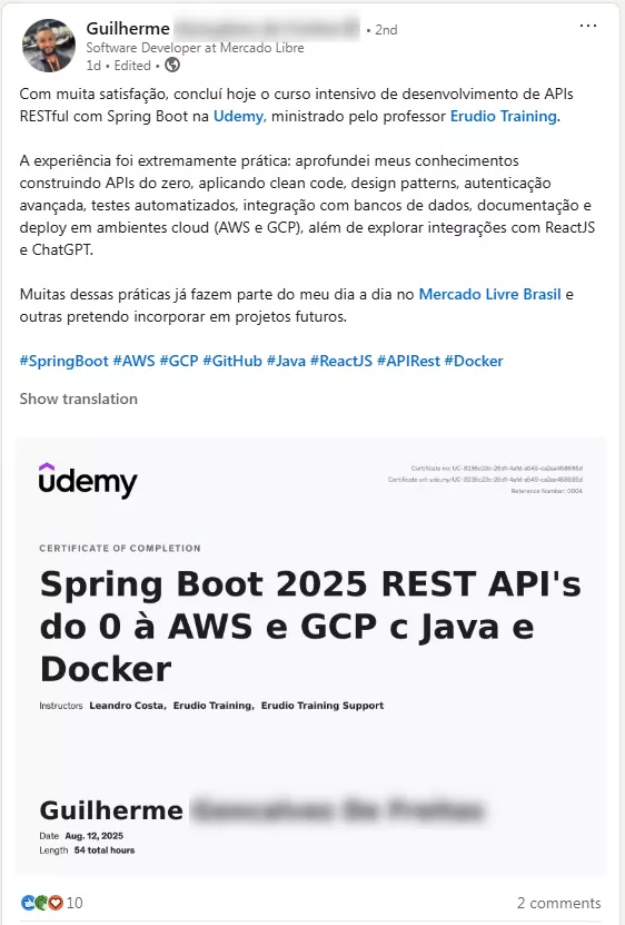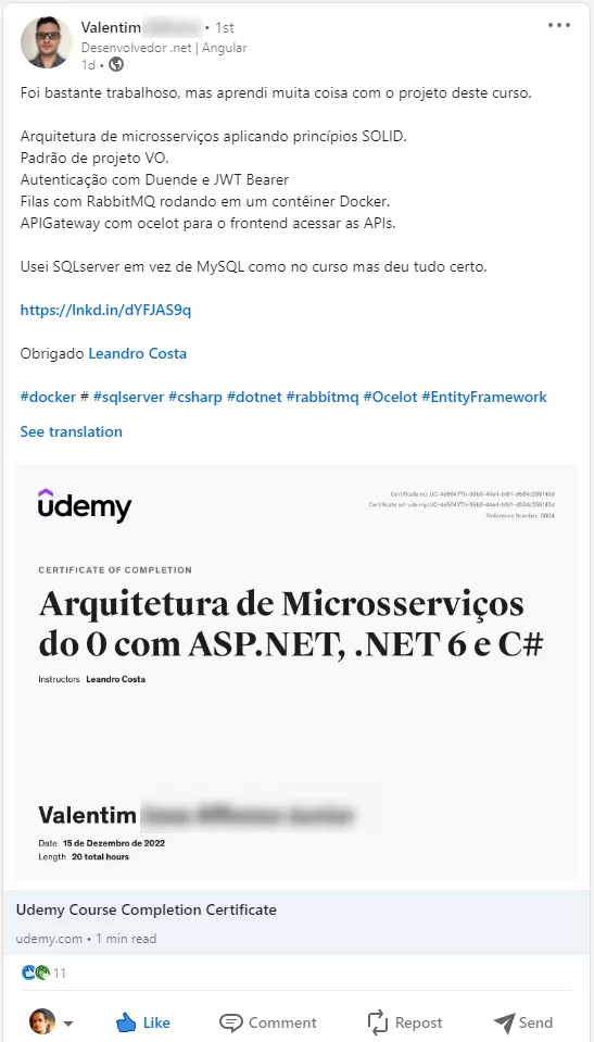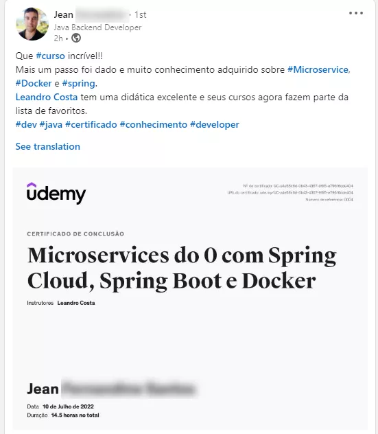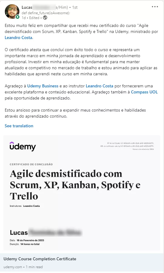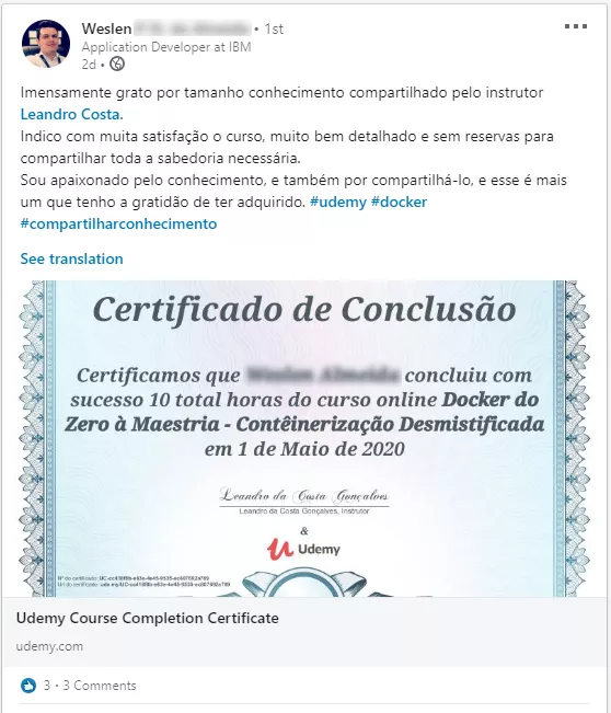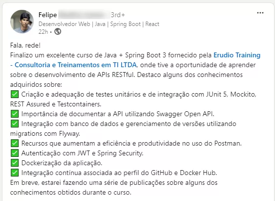 ✓ Adicione ao seu LinkedIn para destacar suas qualificações