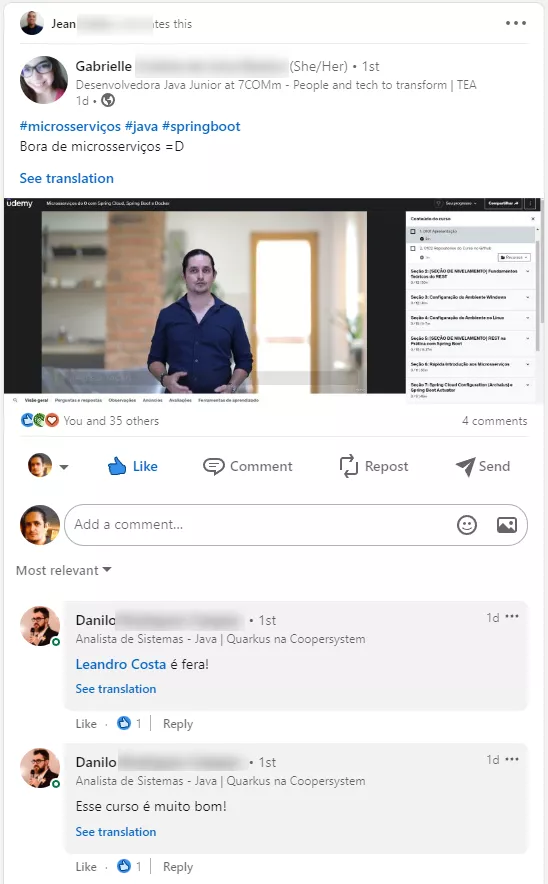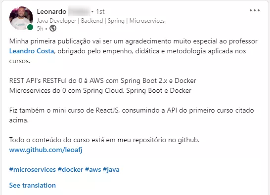 Olha o que meus alunos tem falado sobre meus treinamentos