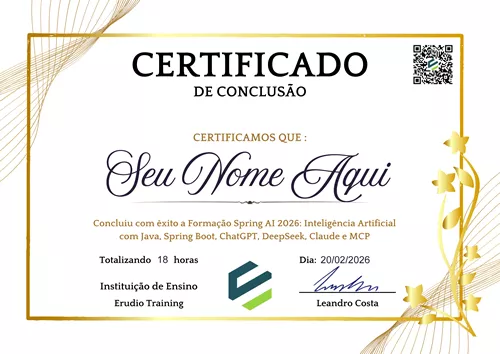 Domine Inteligência Artificial com Spring AI e MCP e leve suas habilidades de desenvolvimento para o próximo nível. Aprenda a criar aplicações inteligentes, inovadoras e modernas com Java, Spring Boot, ChatGPT, DeepSeek, Claude, Ollama e MCP.