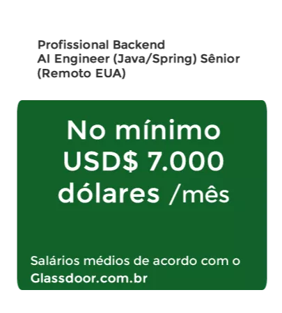 Você trabalhando remotamente daquele lugar que sempre sonhou, criando aplicações inteligentes que impressionam clientes e recrutadores. Seus sistemas usando Tool Calling para acessar dados em tempo real, MCP conectando múltiplos contextos de forma fluida, e LLMs processando informações complexas automaticamente. Aquele salário de especialista em IA mudando seu padrão de vida — aquele apartamento melhor, aquela viagem internacional finalmente saindo do papel. Você dominando a tecnologia do futuro, trabalhando com as mesmas ferramentas que Google, Meta e Netflix usam e sendo reconhecido como o profissional que sabe integrar Inteligência Artificial de verdade — do código até a entrega de valor real.
